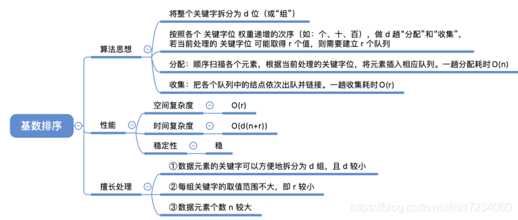 /*思想:基数排序其实就是按位排序、实现时用分桶的方法