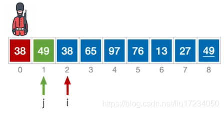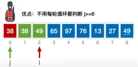 从i的左边依次往左检查比当前元素更大,大就交换位置,j--当j<0的时候就会停止