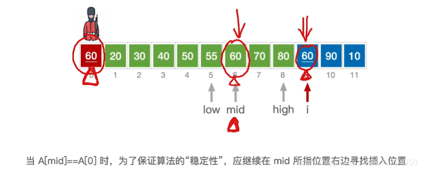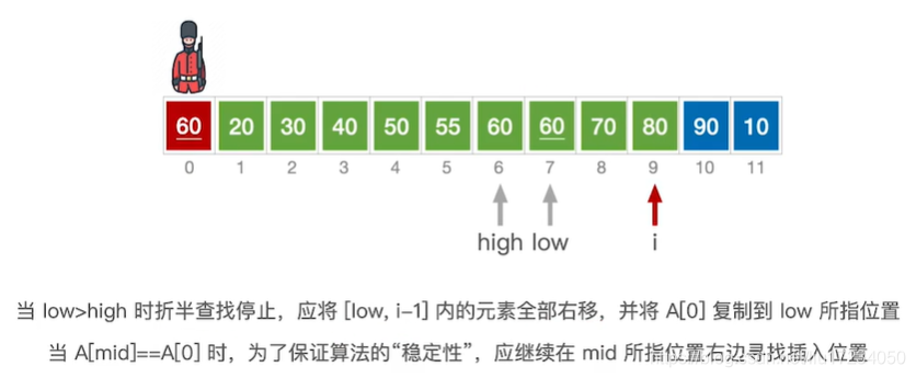for(j=i-1;A[0]<A[j];--j) //从后往前查找待插入位置