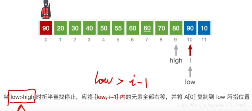 A[0]=A[i]; //复制为哨兵,A[0]不存放元素