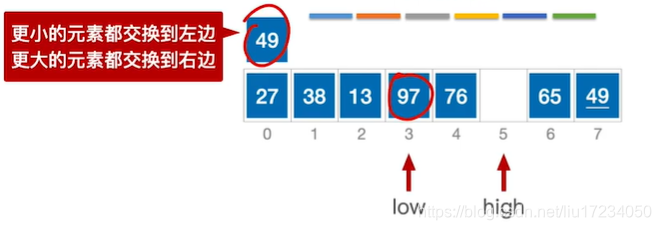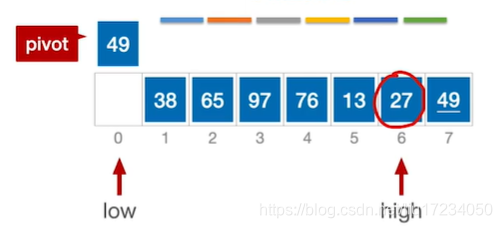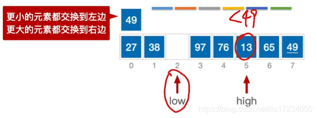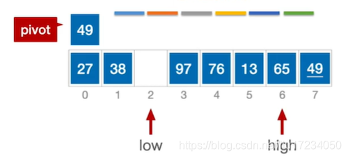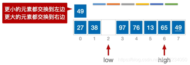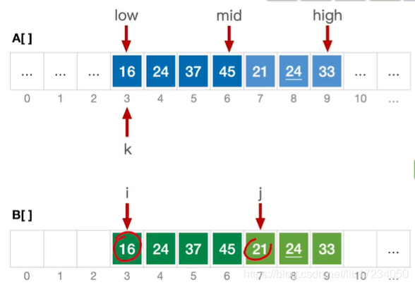 for( i=low , j=mid+1,k=i; i<=mid&&j<=high ;k++) //归并