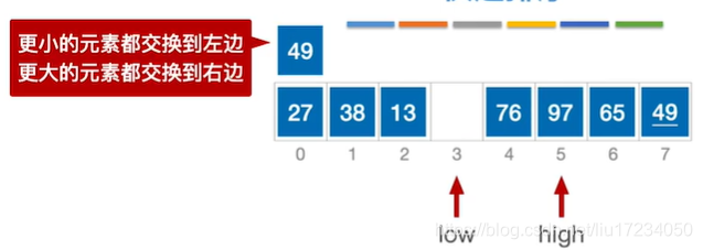 //A[ low...mid]和A[mid+...high]各自有序,将两个部分归并
