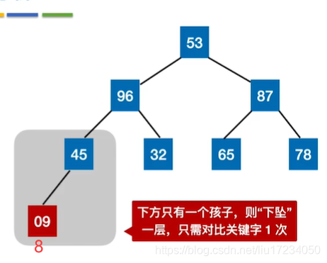 而败者树恰好相反,其双亲结点存储的是左右孩子比较之后的失败者,而胜利者则继续同其它的胜者去比较