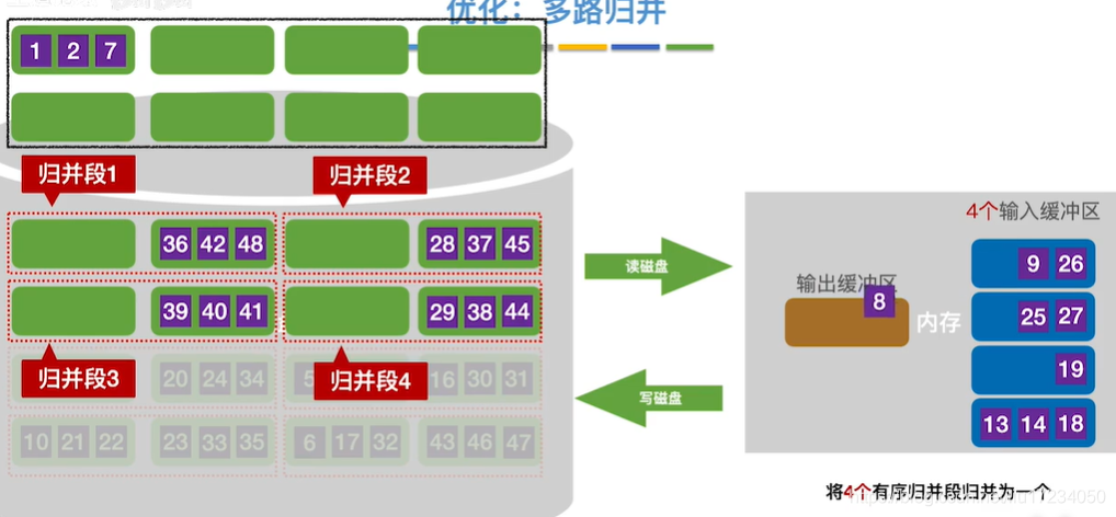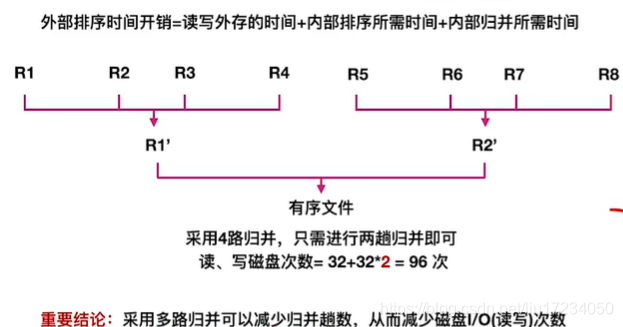 但是经过计算得知,如果毫无限度地增加 k 值,虽然会减少读写外存数据的次数,但会增加内部归并的时间,得不偿失