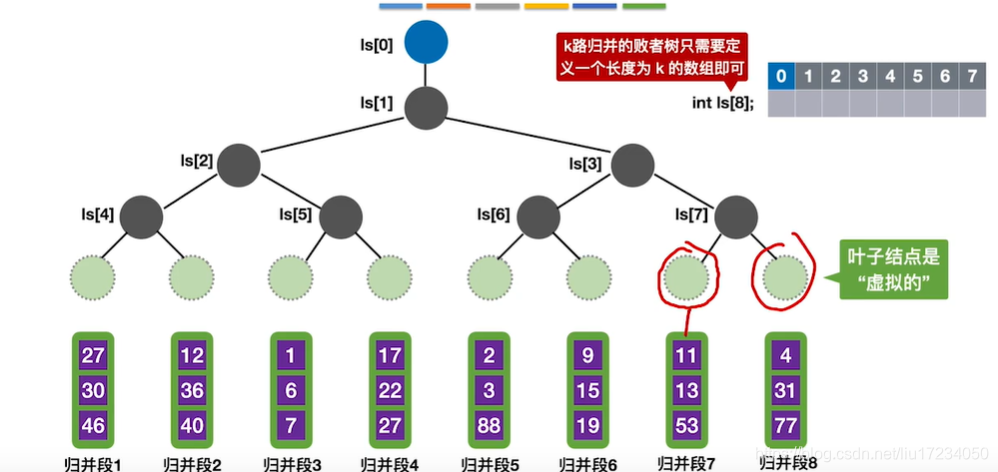 败者树是树形选择排序的一种变形,本身是一棵完全二叉树