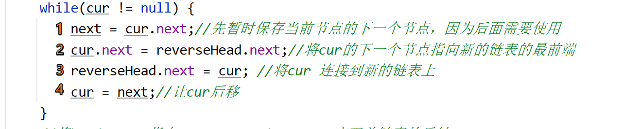 reverseHead.next = cur; //将cur 连接到新的链表上