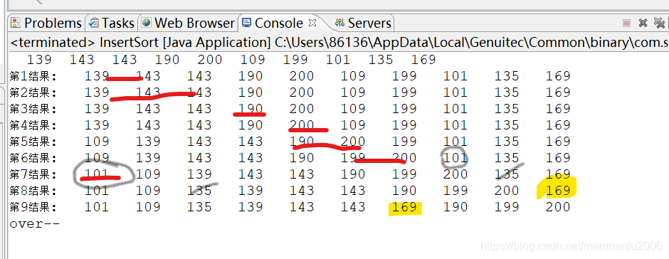 思想:對未排序的数据执行逐个插入到前面已排好的位置