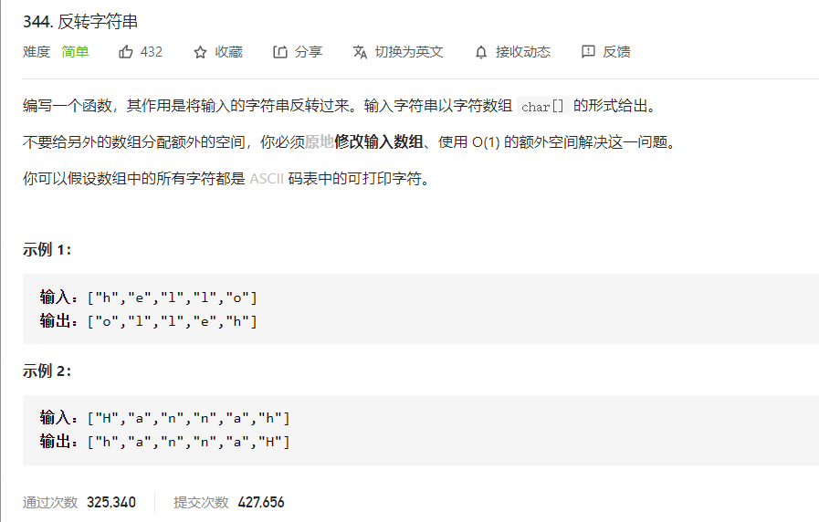 题目概述:  注意点: 涉及到双指针问题,好像和递归没有关系。 遇到双指针问题,最好 for(int i=0, j=s.length-1;i<j;i++,j–)写,而不是两个for循环,这样会更加的麻烦。