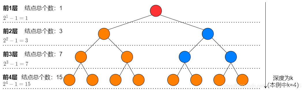 对于完全二叉树而言: k-1层满二叉树的结点数
