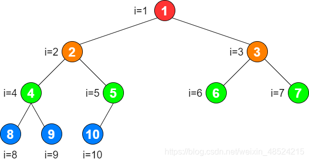 ?log2?n?+1)的结点按层序编号(从上到下,从左到右,依次增大),对任一结点 i (