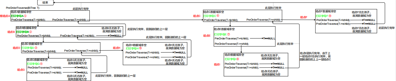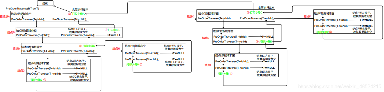 (1)打印结点(根结点和其他结点)的数据内容 (2)先序遍历左子树 (3)先序遍历右子树