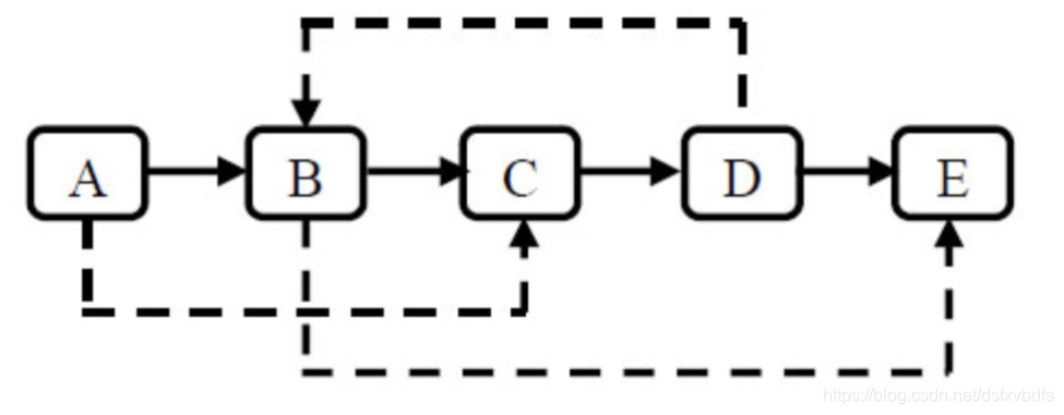 输入一个复杂链表(每个节点中有节点值,以及两个指针,一个指向下一个节点,另一个特殊指针random指向一个随机节点),请对此链表进行深拷贝,并返回拷贝后的头结点。(注意,输出结果中请不要返回参数中的节点引用,否则判题程序会直接返回空)。?下图是一个含有5个结点的复杂链表。图中实线箭头表示next指针,虚线箭头表示random指针。为简单起见,指向null的指针没有画出。