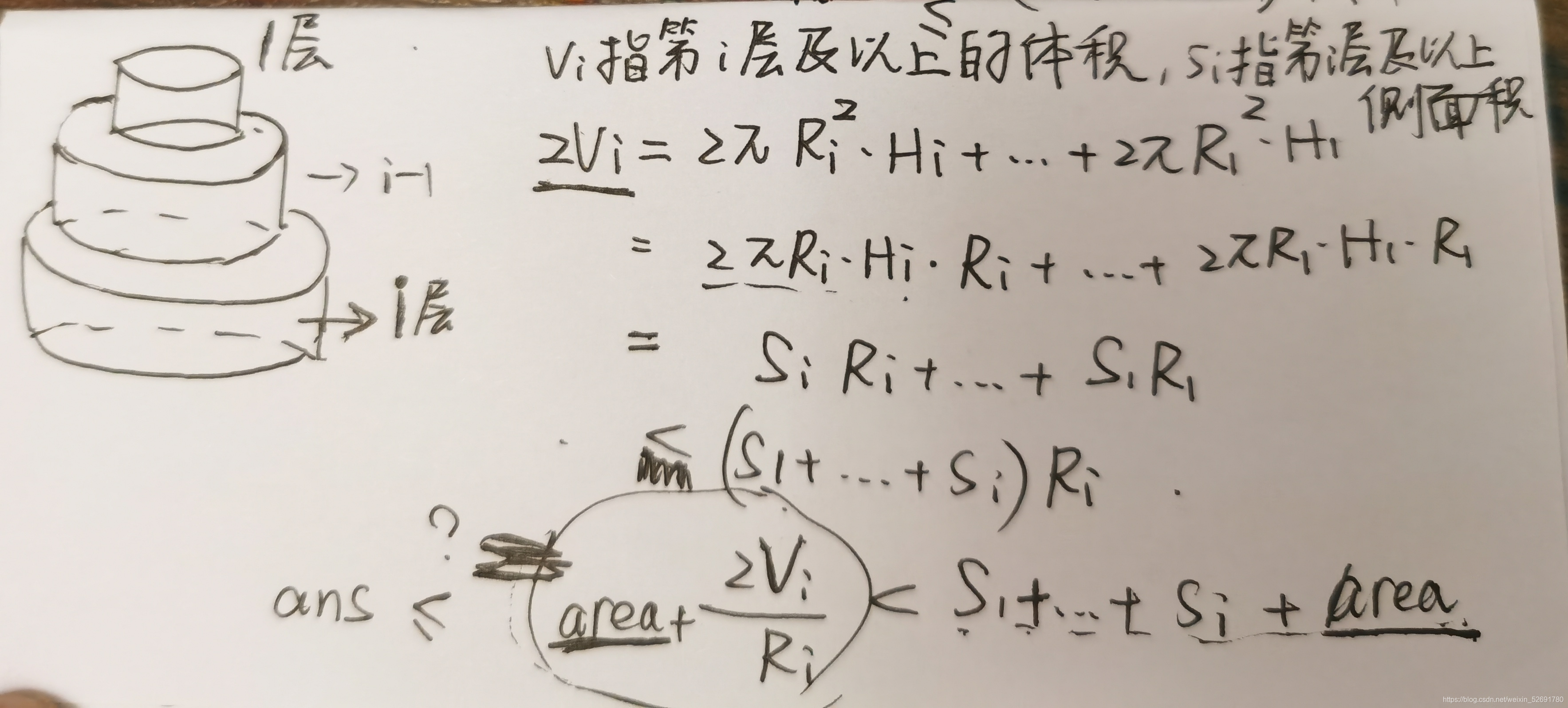 void dfs(int r, int h, int area, int rest, int m)//r当前层数半径 h当前层数高 area当前层数表面积 rest当前层数剩余可用体积 m当前层数(可以理解为初到当前层)
