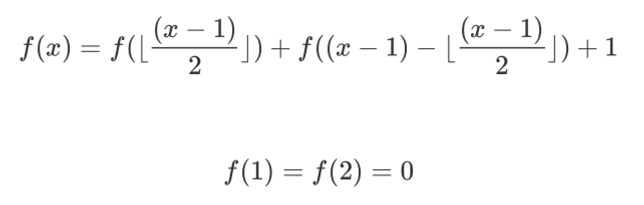 f[i]=(f[tmp]+f[(i-1)-tmp]+1)%mod;//两端有人中间坐