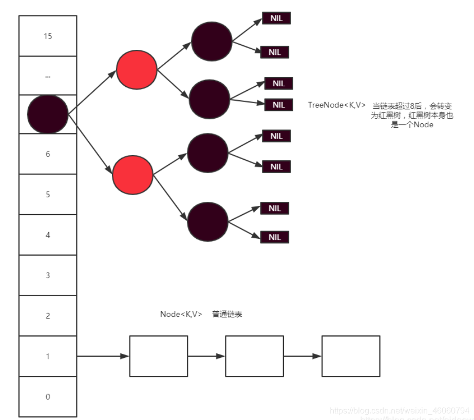 在了解HashMap之前,需要对它所使用的数据结构所了解,在jdk1.8之前HashMap的底层实现 数据结构:数组+链表。在jdk1.8之后的HashMap 数据结构:数组+链表+红黑树(特殊的平衡二叉树)。