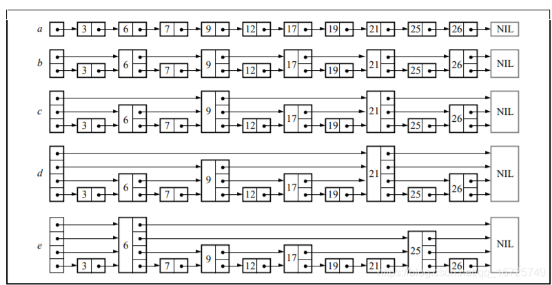 void SkipList::displayList(){ ? ? ?cout<<"\n skiplist"<<"\n"; ? ? ?for(int i = 0; i < level;i++){ ? ? ? ? Node* node = header->forward[i]; ? ? ? ? cout<<"level"<<i<<":"; ? ? ? ? while(node){ ? ? ? ? ? ? cout<<node->key<<" "; ? ? ? ? ? ? node = node->forward[i]; ? ? ? ? } ? ? ? ? cout<<"\n"; ? ? ?} } int main() { ? ? srand((unsigned)time(0)); ? ? SkipList l(3,0.5); ? ? l.insertElem(3); ? ? l.insertElem(6); ? ? l.insertElem(7); ? ? l.insertElem(9); ? ? l.insertElem(12); ? ? l.insertElem(19); ? ? l.insertElem(17); ? ? l.insertElem(26); ? ? l.insertElem(21); ? ? l.insertElem(28); ? ? l.insertElem(23); ? ? l.insertElem(11); ? ? l.insertElem(1); ? ? l.displayList(); ? ? l.deleteElem(19); ? ? l.displayList(); ? ? l.searchElem(6); ? ? l.searchElem(600); ? ? return 0; }