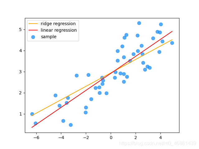 为避免噪声样本(脱离在大部队之外)的影响,这些样本认为是偶然性造物 岭回归相较于普通的线性回归在损失函数后加了一个正则项,减少了噪声样本的影响