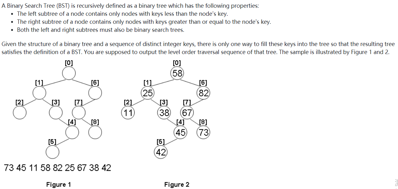 题目概述: 给出一颗二叉树的节点连接方式,和一组树,然后根据BST的规则填入