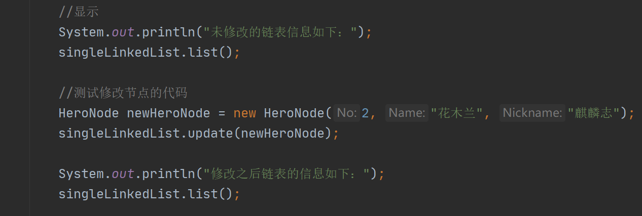 singleLinkedList.update(newHeroNode);