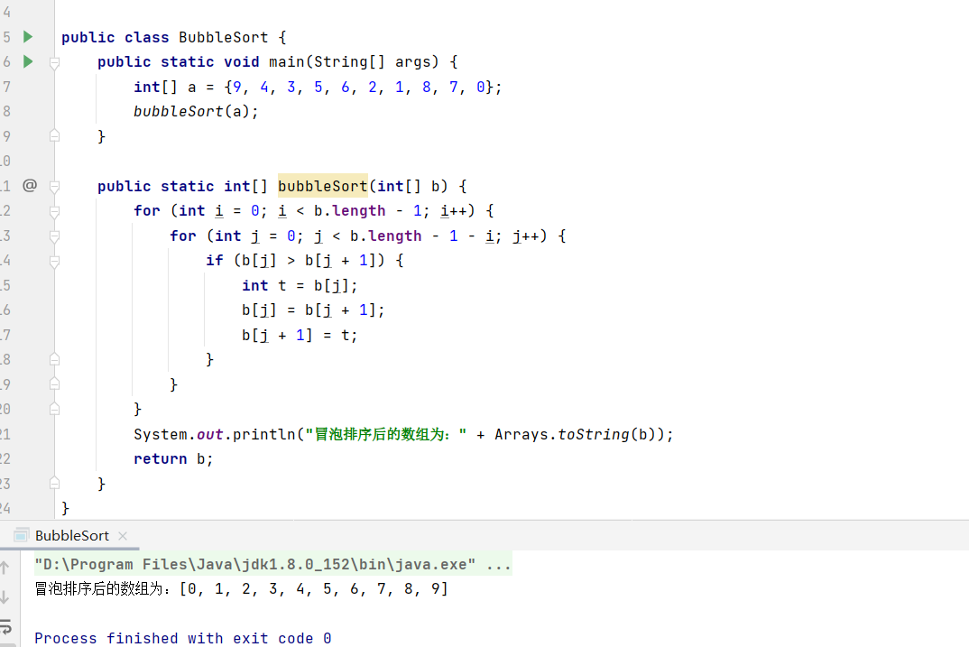System.out.println("冒泡排序后的数组为:" + Arrays.toString(b));