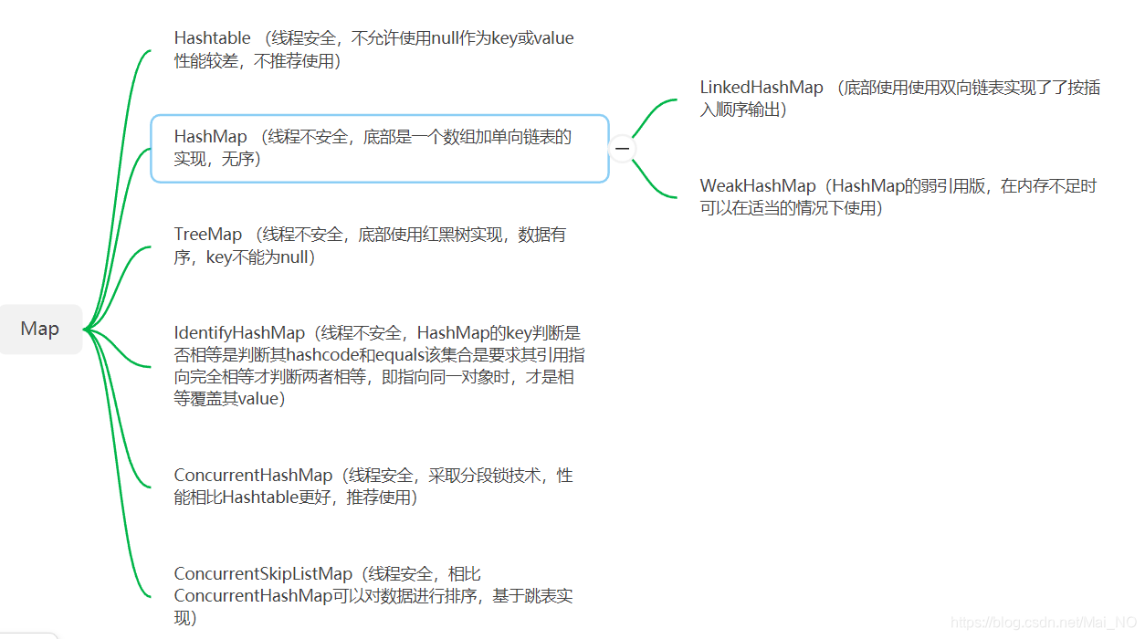 线程不安全,弱引用版本的HashMap, WeakHashMap的key只保留了对实际对象的弱引用,这意味着如果WeakHashMap对象的key所引用的对象没有被其他强引用变量所引用,则这些key所引用的对象可能被垃圾回收,WeakHashMap也可能自动删除这些key对应的键值对。内存有压力且数据允许一定的丢失情况发生时可以使用。