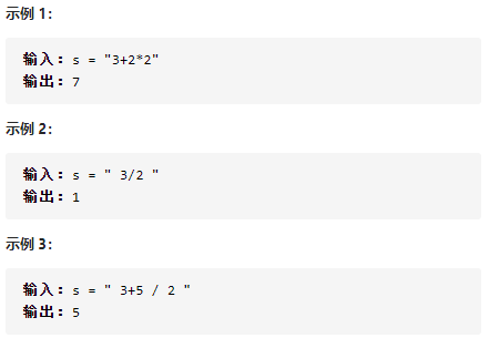 来源:力扣(LeetCode) 链接:https://leetcode-cn.com/problems/basic-calculator-ii 著作权归领扣网络所有。商业转载请联系官方授权,非商业转载请注明出处。