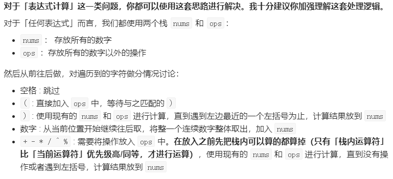 参考@宫水三叶【使用「双栈」解决「究极表达式计算」问题】