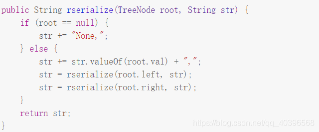 String leftStr=Serialize(root.left);//这里不需要+“,”,从底下往上返回都是带了“,"