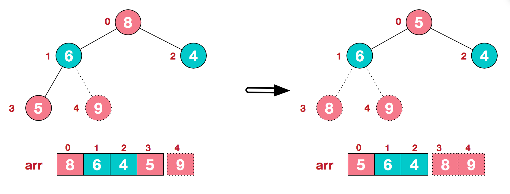 将堆顶元素9和末尾元素4进行交换