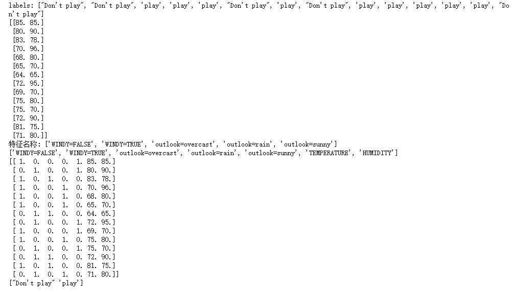 2、读取play.csv文件的内容(outlook(天气),TEMPERATURE(温度)、HUMIDITY(湿度),WINDY(风)代表四个特征。 最后一列(play)代表类别,即是否出去打球),根据play.csv的数据构造决策树以及训练模型,画出决策树。