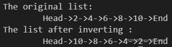printf("The list after inverting:\n");