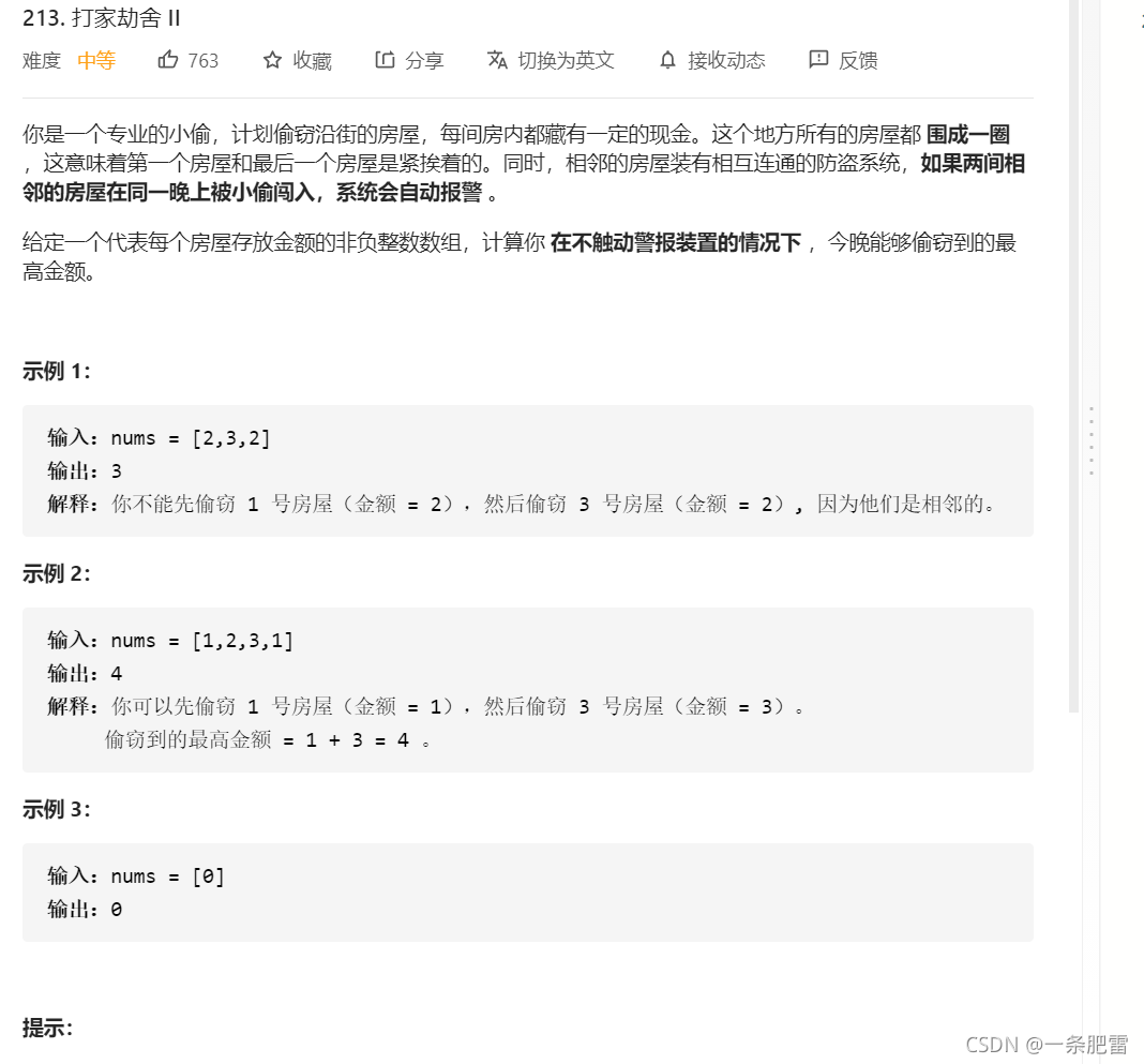 200道大数据面试常考Leetcode算法题(动态规划再进阶(序列类动态规划问题)篇)213-打家劫舍II