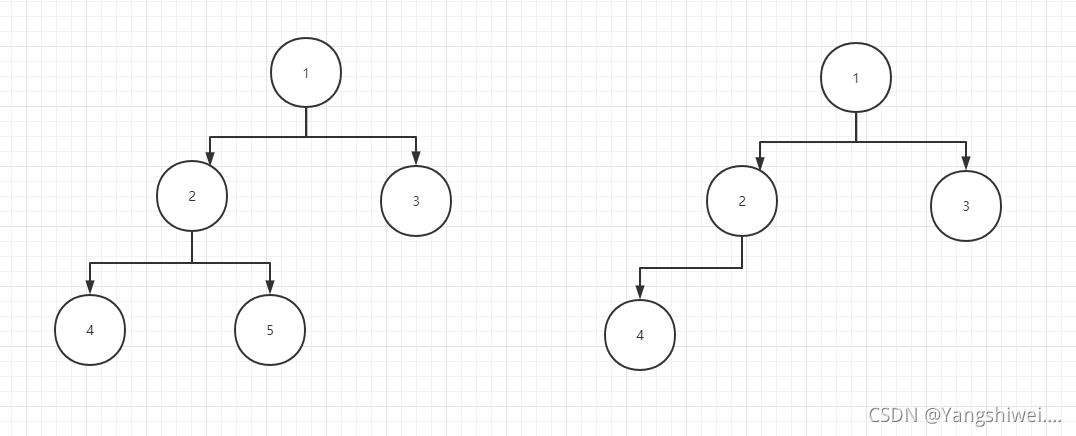 我们可以看到,完全二叉树在最底下的一排都只有一条连线(比如3,4,5),而其他结点都有至少两个连线,且以3为分界线,3之前都至少有2跟连线,而之后只有1个。