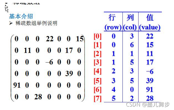 稀疏数组的作用,对重复量数据大的数据可以使用,减少存储的内容