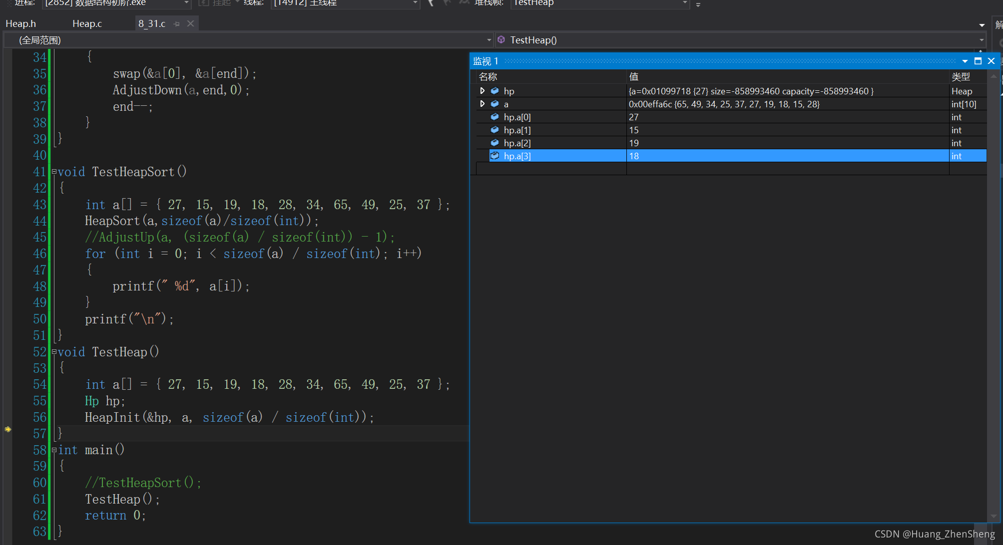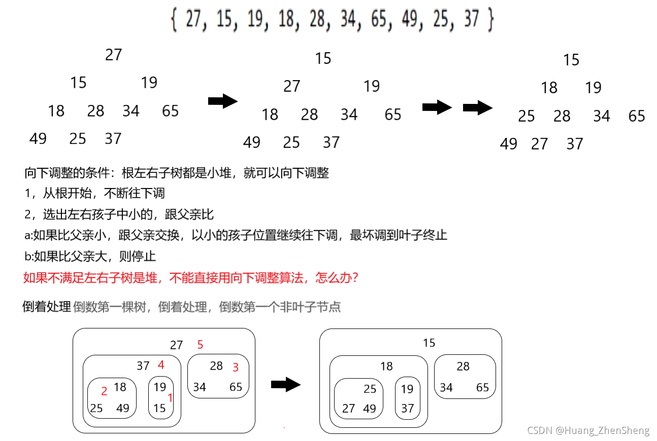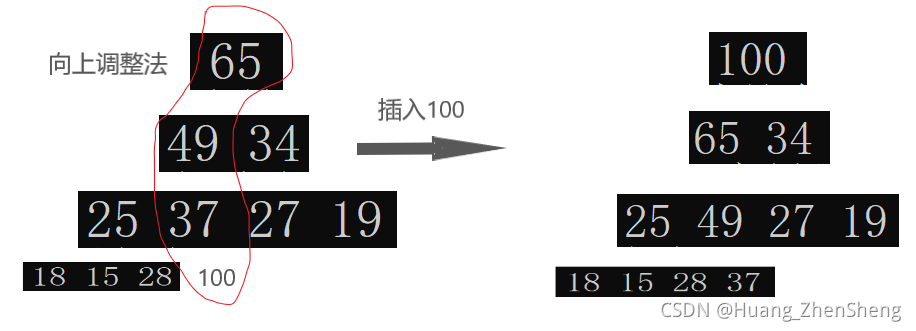 其次,还要继续保持其实堆,这里采用向上调整法!