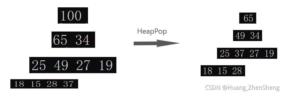 //删除堆顶即根节点的数据,删除后保持其继续是堆