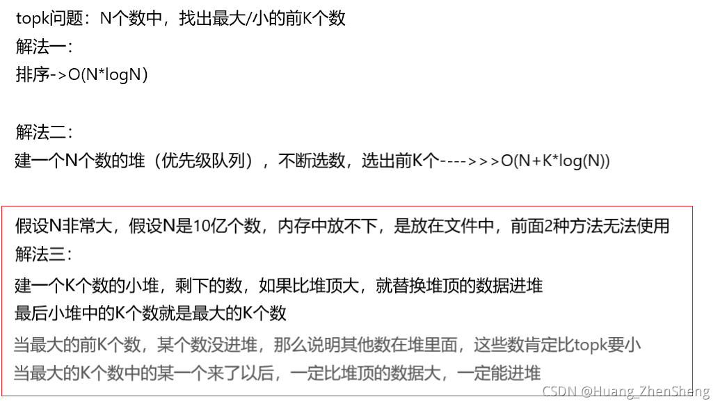 第二点:堆排序,将最大的数和最后一个数交换,再向下调整,时间复杂度O(N*logN)