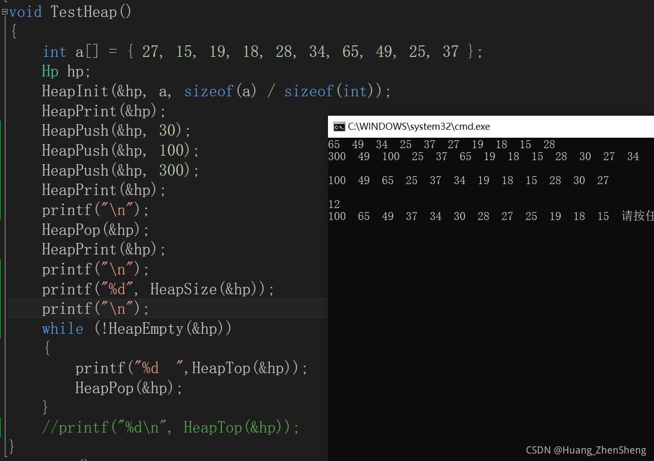 获取堆顶的数据,也就是最大值,并计算堆的元素个数
