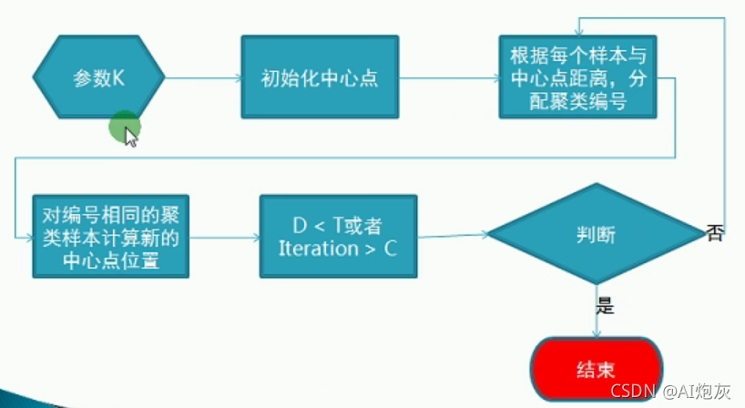 ????????K-Means算法是基于距离相似性的聚类算法,通过比较样本之间的相似性,将形式的样本划分到同一个类别中,K-Means算法的基本过程为: