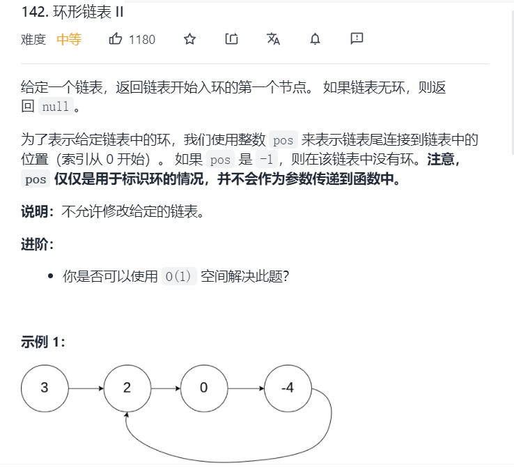 ?所以,可以采取的方式是,当fast指针和slow指针相遇后,将slow指针再指向head, 然后slow指针和fast指针以同样的速度走,当slow和fast指针相遇时,就说明到了环的起始位置。