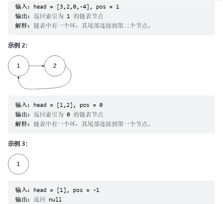 解题思路:和141环形链表类似的,这题也采用双指针来解。