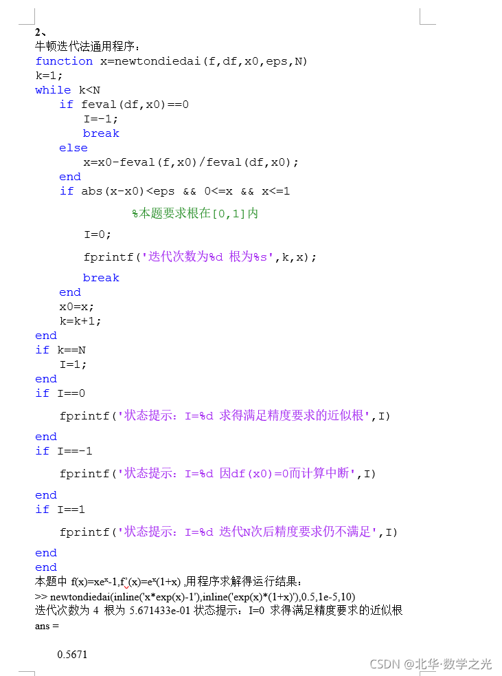 fprintf('状态提示:I=%d 因df(x0)=0而计算中断',I)