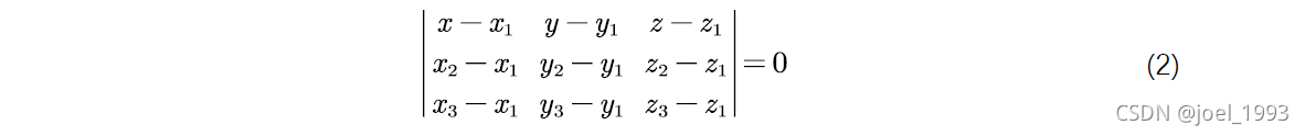 然后三角形所在平面的方程用行列式表示为
