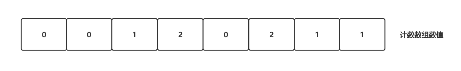 构建一个计数数组,大小等于原始数组取值的范围,假设待排序数据都是正整数,那么对于上面的待排序数组的取值范围就是0~8