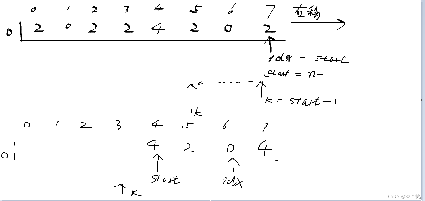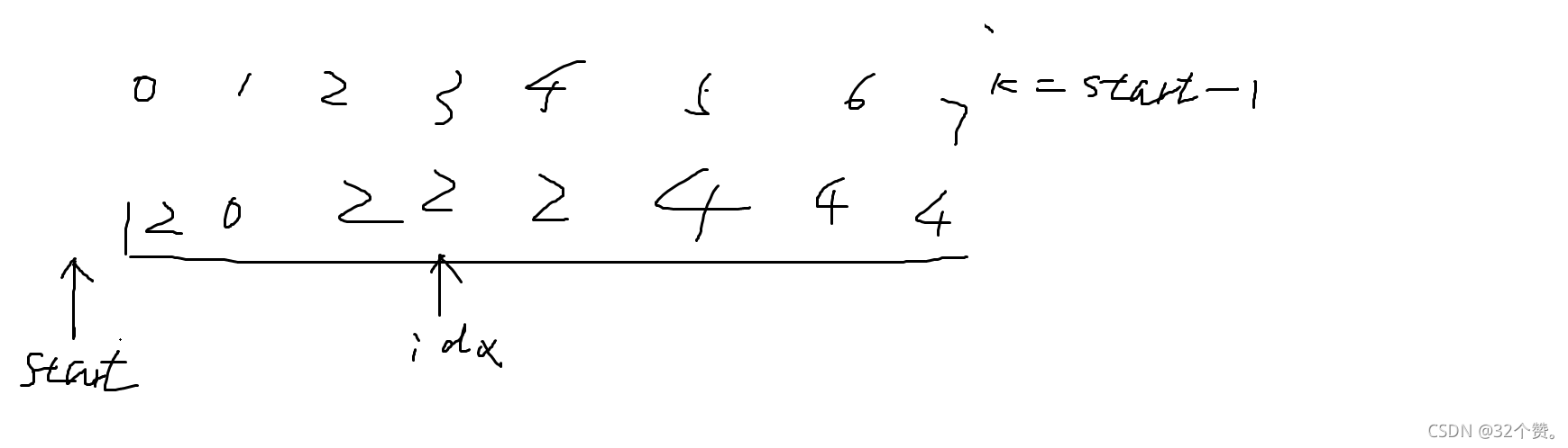 ?定义start下标指针,指向遍历的起点,idx初始值为遍历的开始起点也就是start的初始值
