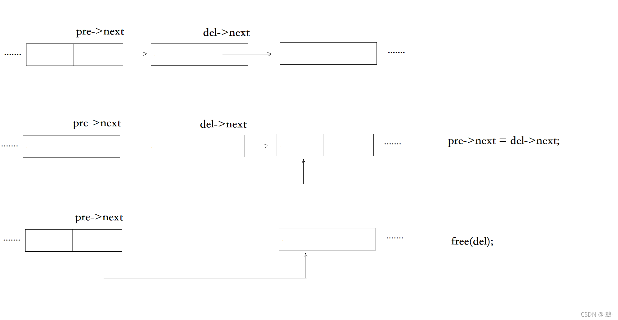 while(pre->next != NULL && pre->next->data != data) pre = pre->next; /*寻找数值为data的前置结点*/