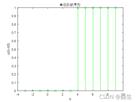 (二)实验二:单位阶跃序列。在matlab中可以用n>=0来实现u(n-n0)(如图2)。