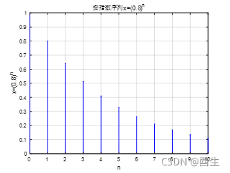 title('实指数序列x=(0.8)^n');? %对图像主题的说明