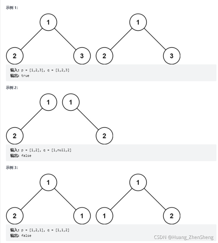 如果两个树在结构上相同,并且节点具有相同的值,则认为它们是相同的。?