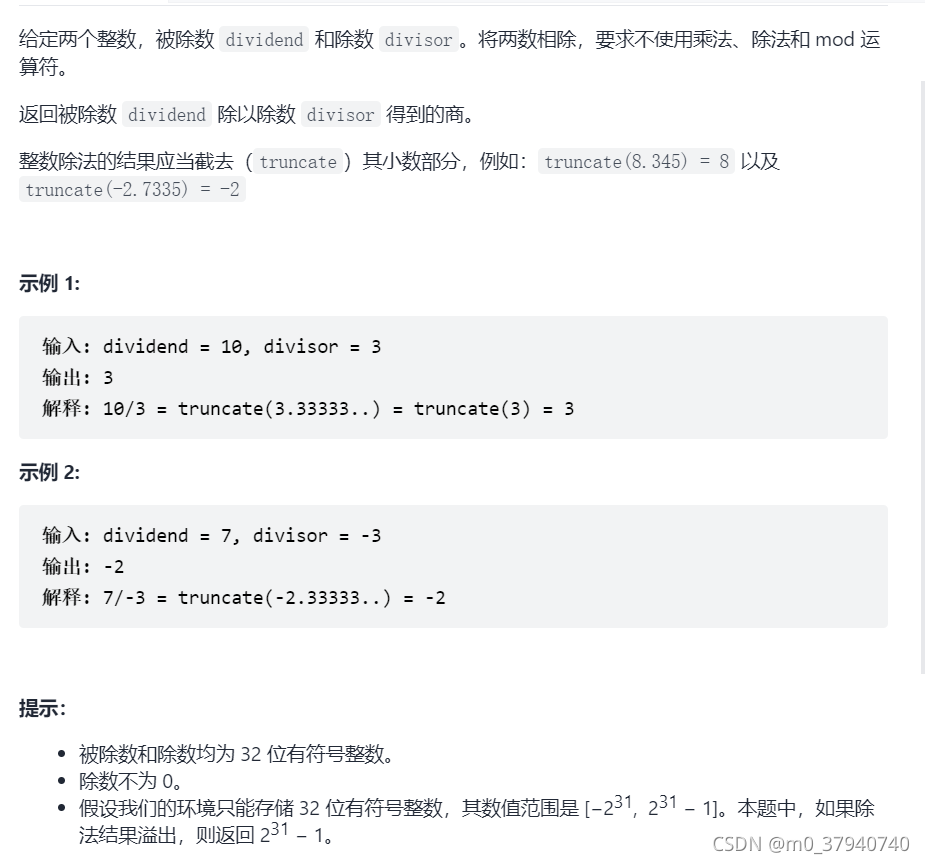 * 商值使用long存储,当商值>int类型的最大值,返回商值最大值。